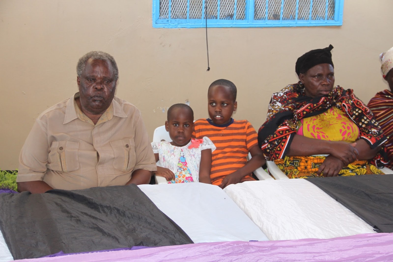 | Wazazi wa marahemu Hellen wakiwa na watoto wa marehemu |